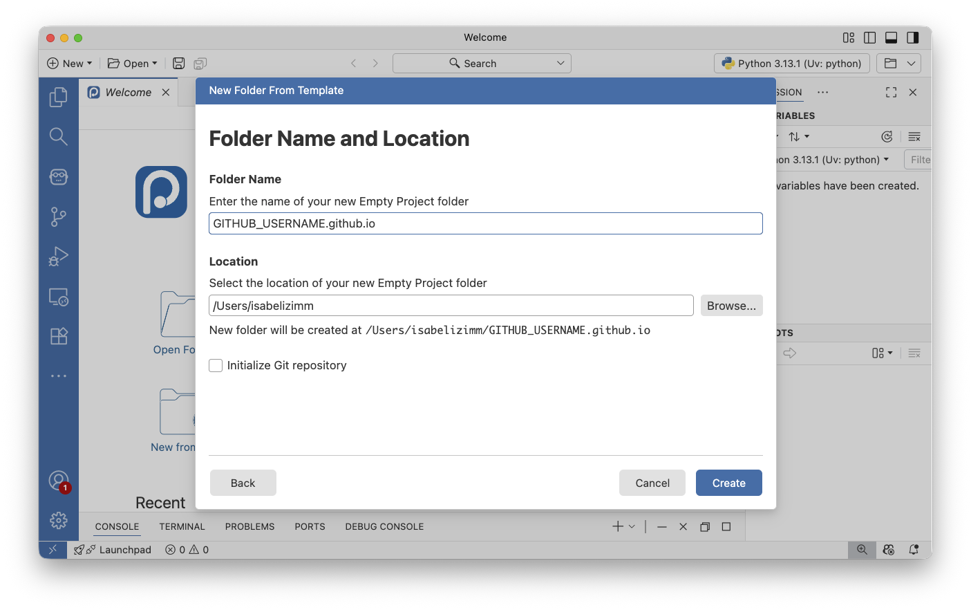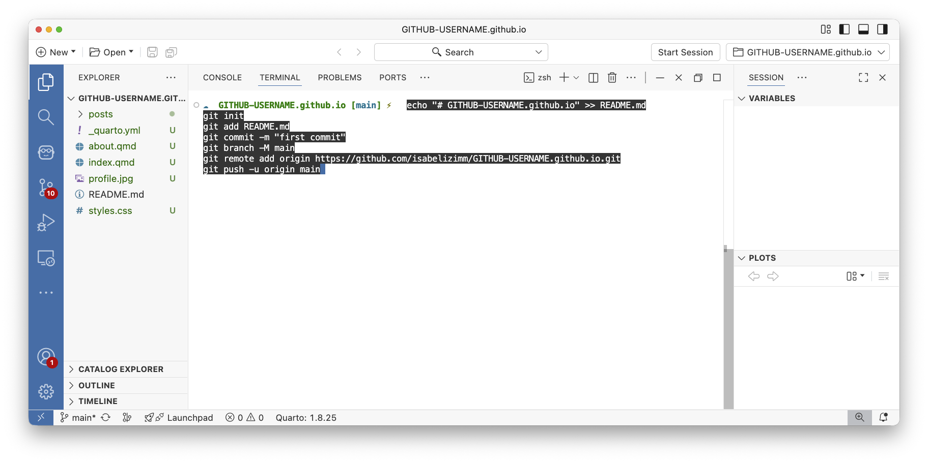 - Make sure you are in the TERMINAL tab, not the CONSOLE tab